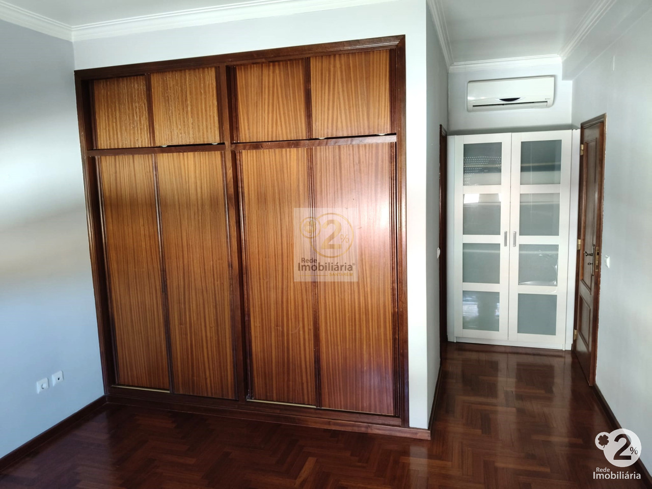 No primeiro piso, encontram-se quatro quartos, todos com roupeiros embutidos, sendo um deles uma suíte com ar condicionado e banheira de hidromassagem, ideal para relaxar após um longo dia. Uma casa de banho adicional atende aos outros três quartos. Com pré-instalação de ar condicionado em toda a moradia, o conforto está garantido em todas as estações.