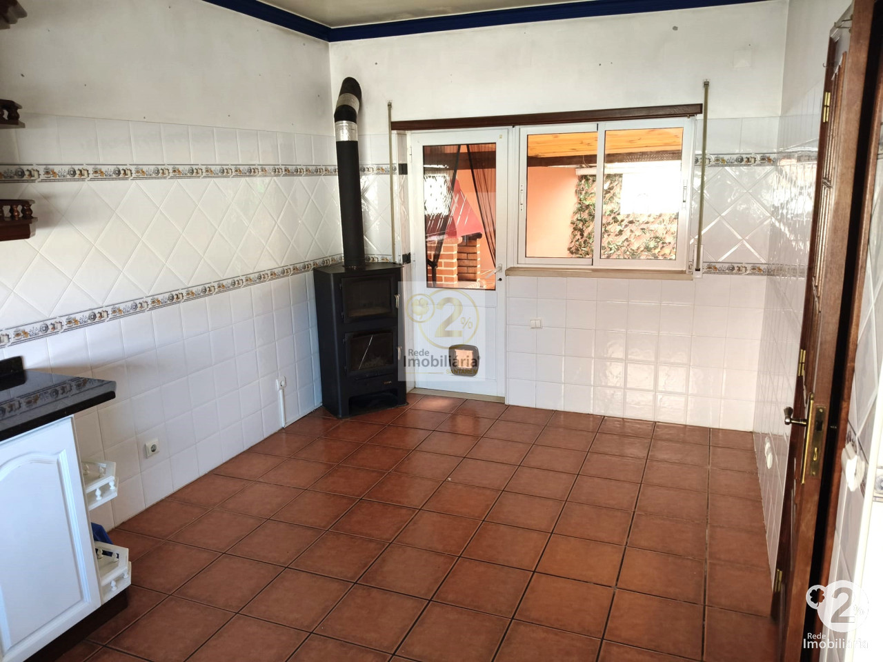 No piso térreo, a sala destaca-se pela luminosidade e pelo recuperador de calor a pellets, criando um espaço perfeito para momentos de convívio. A cozinha é espaçosa e equipada com uma salamandra, além de ter acesso à churrasqueira coberta e à garagem. O piso também conta com uma casa de banho e uma despensa, proporcionando praticidade no dia a dia.